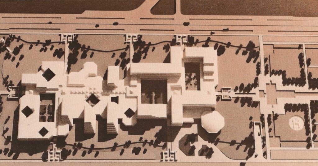 – An internal system of pedestrian circulation was designed with a variety of courtyards – the journey through the linear walkway was diversified architecturally by use of arcades, covered areas and changing architectural and landscaping mood