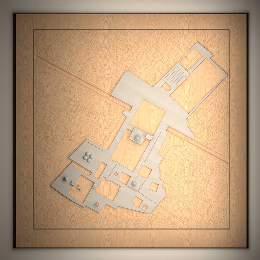 The project called for expansion of facilities and services, as the number of pilgrims and the amount of their donations were increasing annually. A large area around the shrine was cleared for expansion of outdoor and indoor facilities, including hostels, libraries, a museum, restaurant facilities and shops. We tried to follow the tradition of vernacular architecture, which is a prominent feature of the immediate neighborhoods, by making internally oriented architecture with interconnected courtyards, arcades and covered passages linking two existing mosques and a bazaar. We went still further by trying to alter an existing modern avenue and traffic circle by introducing a new street with arcades and shops.
