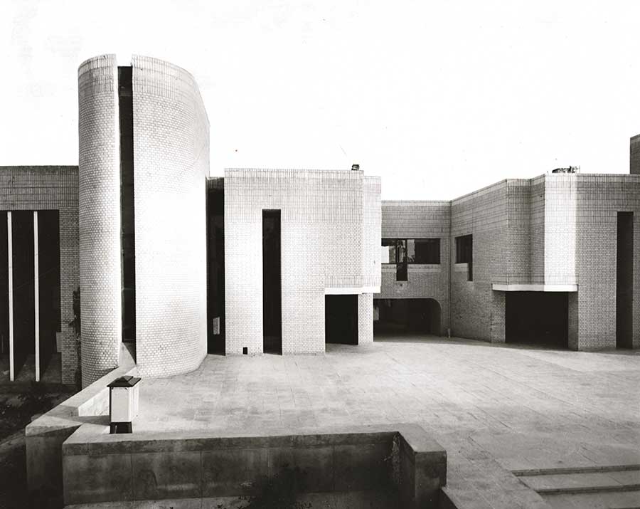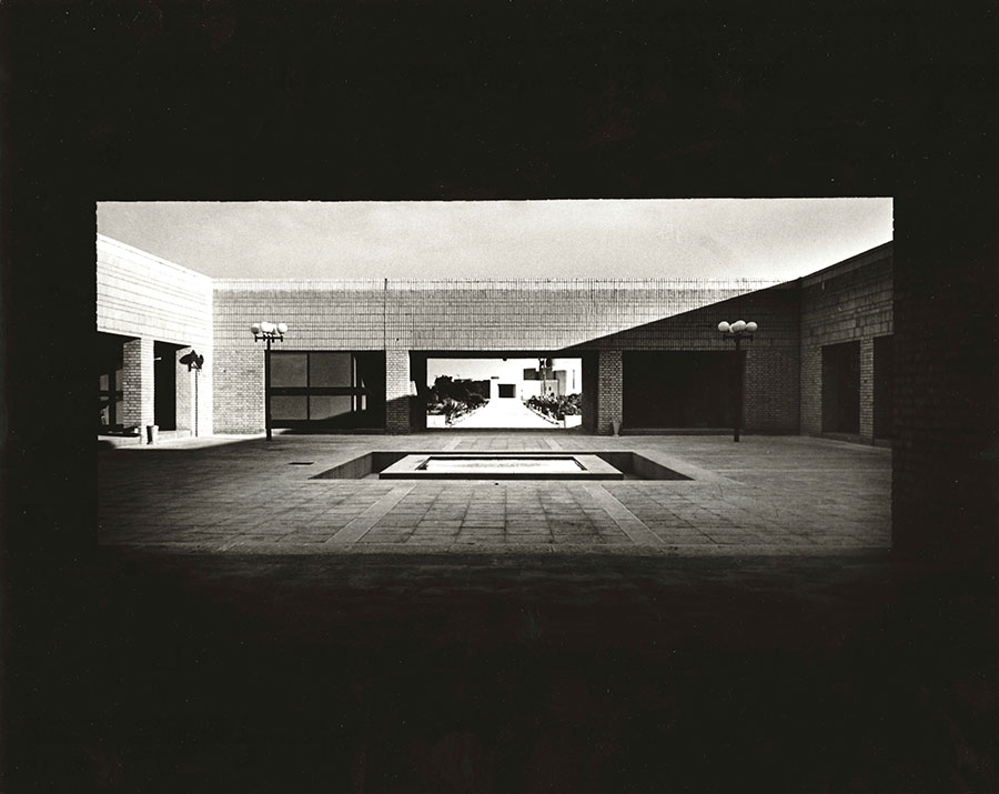 The program called for a cafeteria, a reception area and small meeting rooms. In addition, a number of small shops and a teahouse with outdoor seating were provided facing the internal courtyard, with a small square reflecting pool. This walkway leads to the mosque.