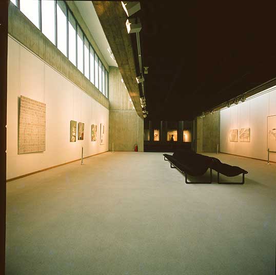 The organization of the physical program consists of two major elements. Firstly, there is the entrance hall which accommodates all support facilities such as bookshop, snack-bar, library, offices, lecture hall/cinematheque and storage. Secondly, there is an open courtyard surrounded by a chain of interconnected and articulated galleries. These are divided into large and small exhibition spaces, accommodating respectively large paintings, a single painting, and small paintings and drawings.